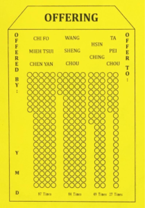 • The Qi Fo Mie Zui Zhen Yan (or Chi Fo Mieh Tsui Chen Yan), recited 87 times (refer to Figure 1).