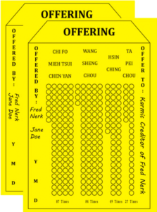 Two people may complete one Little House by jointly reciting either the same or different scriptures. Each reciter must personally write their name on the Little House. The names can be written side by side or on top of each other (refer to Figure 31). However, joint recitation is not recommended, unless under special circumstances. It is best to recite separately.