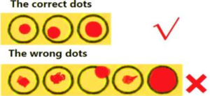 • Only red pens or markers of suitable thickness are to be used for the dots.