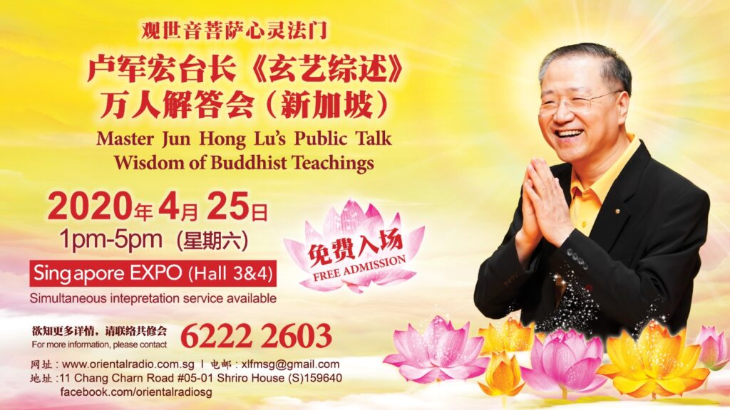 Singapore Guan Yin Citta Dharma Door is honoured to have Master Jun Hong Lu, a spiritual teacher with 10 million followers around the world, to visit Singapore once again on 25th April 2020 (Saturday) at the Singapore EXPO!