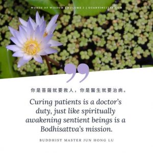 Words of Wisdom | A Bodhisattva’s Mission Published on October 21, 2020 Curing patients is a doctor’s duty, just like spiritually awakening sentient beings is a Bodhisattva’s mission. 你是菩萨就要救人, 你是医生就要治病。 – Master Jun Hong Lu, Words of Wisdom Volume 2