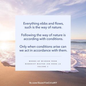 Everything ebbs and flows, such is the way of nature. Following the way of nature is according with conditions. Only when conditions arise can we act in accordance with them.