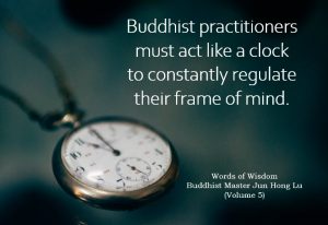 Words of Wisdom Words of Wisdom | Act Like A Clock 14/11/2020 | Words of Wisdom Words of Wisdom < Words of Wisdom Buddhist practitioners must act like a clock to constantly regulate their frame of mind. 学佛人的心态如钟,要靠自己不断地调整。 – Master Jun Hong Lu, Words of Wisdom Volume 5 < Words of Wisdom