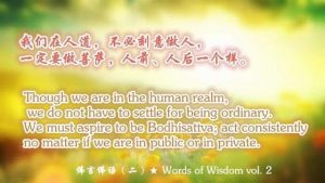 Though we are in the human realm, we do not have to settle for being ordinary. We must aspire to be Bodhisattvas; act consistently no matter if we are in public or in private.