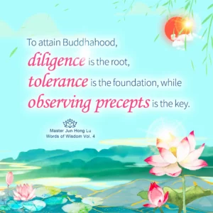 Words of Wisdom Words of Wisdom | Attaining Buddhahood 04/11/2020 | Words of Wisdom Words of Wisdom < Words of Wisdom To attain Buddhahood, diligence is the root, tolerance is the foundation, while observing precepts is the key. 精进是根本,忍辱是基础, 守戒是成佛的关键。 Master Jun Hong Lu, Words of Wisdom Volume 4 < Words of Wisdom