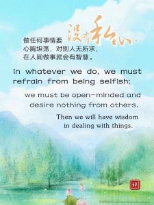 In whatever we do, we must refrain from being selfish; we must be open minded and desire nothing from others. Then we will have wisdom in dealing with things.