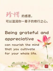 Words of Wisdom Words of Wisdom | Being Grateful And Appreciative 20/11/2020 | Words of Wisdom Words of Wisdom < Words of Wisdom Being grateful and appreciative can nourish the mind that you cultivate for your whole life. 珍惜的感恩, 可以滋润你一辈子的修行之心。 Master Jun Hong Lu, Words of Wisdom Volume 9 < Words of Wisdom