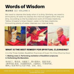 What is the best remedy for spiritual cleansing? It is the Three Golden Buddhist Practices of Guan Yin Citta Dharma Door: making vows, performing recitations of Buddhist scriptures and performing life liberation.