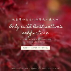 Words of Wisdom Words of Wisdom | Bodhisattva’s Self-Nature 10/11/2020 | Words of Wisdom Words of Wisdom < Words of Wisdom Only with Bodhisattva’s self-nature can we cultivate to transcend the five aggregates. 用菩萨的自性才能修出五蕴之外。 Master Jun Hong Lu, Words of Wisdom Volume 4 < Words of Wisdom