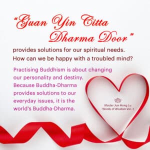 “Guan Yin Citta Dharma Door” provides solutions for our spiritual needs. How can we be happy with a troubled mind? Practising Buddhism is about changing our personality and destiny. Because Buddha-Dharma provides solutions to our everyday issues, it is the world’s Buddha-Dharma.
