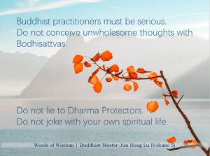 Buddhist practitioners must be serious. Do not conceive unwholesome thoughts with Bodhisattvas. Do not lie to Dharma Protectors. Do not joke with your own spiritual life.