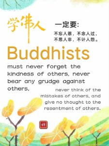 Buddhists must never forget the kindness of others, never bear any grudge against others, never think of the mistakes of others, and give no thought to the resentment of