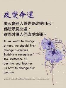 If we want to change others, we should first change ourselves. Buddhism recognises the existence of destiny, and teaches us how to change our destiny.