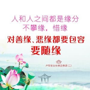 人和人之间都是缘分,不攀缘,惜缘, 对善缘、恶缘都要包容,要随缘。
