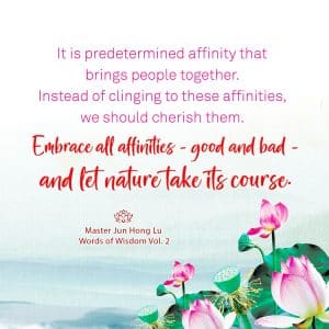 It is predetermined affinity that brings people together. Instead of clinging to these affinities, we should cherish them. Embrace all affinities good and bad and let nature take its course.