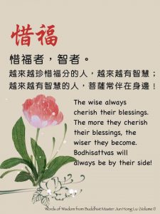 The wise always cherish their blessings. The more they cherish their blessings, the wiser they become. Bodhisattvas will always be by their side!