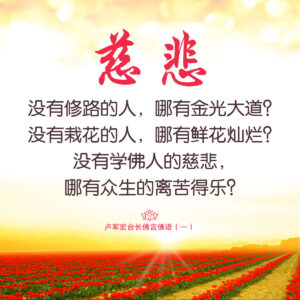 没有修路的人,哪有金光大道?没有栽花的人,哪有鲜花灿烂?没有学佛人的慈悲, 哪有众生的离苦得乐?