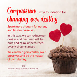 Compassion is the foundation for changing our destiny. Spare more thought for others, and less for ourselves. In this way, we can reduce our desires and our heart will be pure and calm, unperturbed by any circumstances. We can then gain control over ourselves and be the master of own destiny.
