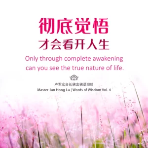 Words of Wisdom Words of Wisdom | Complete Awakening 02/11/2020 | Words of Wisdom Words of Wisdom < Words of Wisdom Only through complete awakening can you see the true nature of life. 彻底觉悟,才会看开人生。 Master Jun Hong Lu, Words of Wisdom Volume 4 < Words of Wisdom