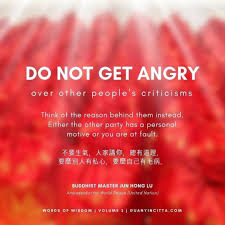 Do not get angry over other people’s criticisms. Think of the reason behind them instead. Either the other party has a personal motive or you are at fault.
