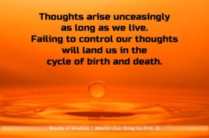 Words of Wisdom Words of Wisdom | Cycle Of Birth And Death 14/11/2020 | Words of Wisdom Words of Wisdom < Words of Wisdom Thoughts arise unceasingly as long as we live. Failing to control our thoughts will land us in the cycle of birth and death. 人活着就是意念,如果没控制好意念就在生 死轮回中。 – Master Jun Hong Lu, Words of Wisdom Volume 5 < Words of Wisdom