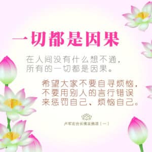 在人间没有什么想不通, 所有的一切都是因果。希望大家不要自寻烦恼, 不要用别人的言行错误来惩罚自己、烦恼自己。