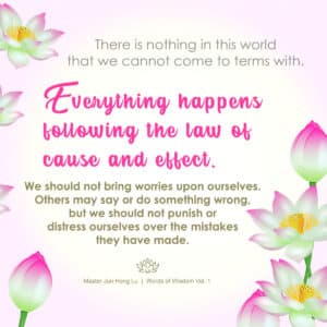 There is nothing in this world that we cannot come to terms with. Everything happens following the law of cause and effect. We should not bring worries upon ourselves. Others may say or do something wrong, but we should not punish or distress ourselves over the mistakes they have made.