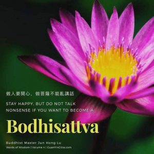 Words of Wisdom | Do Not Talk Nonsense Published on November 7, 2020 Stay happy, but do not talk nonsense if you want to become a Bodhisattva. 做人要开心,做菩萨不能乱讲话。 Master Jun Hong Lu, Words of Wisdom Volume 4
