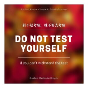 Words of Wisdom Words of Wisdom | Do Not Test Yourself If You Can’t Withstand The Test 04/11/2020 | Words of Wisdom Words of Wisdom < Words of Wisdom Do not test yourself if you can’t withstand the test. 经不起考验,就不要去考验。 Master Jun Hong Lu, Words of Wisdom Volume 4 < Words of Wisdom