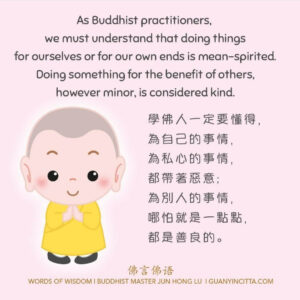 As Buddhist practitioners, we must understand that doing things for ourselves or for our own ends is mean-spirited.