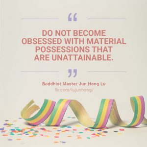 Words of Wisdom Words of Wisdom | Don’t Obsess Over the Material 01/11/2020 | Words of Wisdom Words of Wisdom < Words of Wisdom Do not become obsessed with material possessions that are unattainable. 不要沉迷在自己得不到的物质上。 – Master Jun Hong Lu, Words of Wisdom Volume 2 < Words of Wisdom