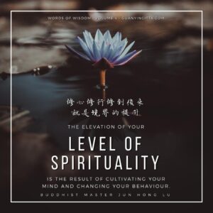 Words of Wisdom | Elevation Of Your Level Of Spirituality Published on November 10, 2020 The elevation of your level of spirituality is the result of cultivating your mind and changing your behaviour. 修心修行修到后来,就是境界的提升。 Master Jun Hong Lu, Words of Wisdom Volume 4