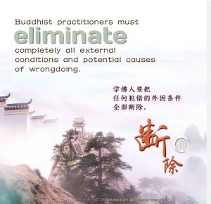 Words of Wisdom Words of Wisdom | Eliminate completely all external conditions and potential causes of wrongdoing 01/11/2020 | Words of Wisdom Words of Wisdom < Words of Wisdom Buddhist practitioners must eliminate completely all external conditions and potential causes of wrongdoing. 学佛人要把任何犯错的外因条件全部断除。 – Master Jun Hong Lu, Words of Wisdom Volume 6 < Words of Wisdom
