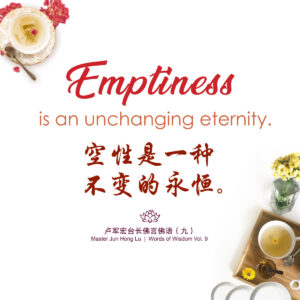 Words of Wisdom Words of Wisdom | Emptiness 29/01/2021 | Words of Wisdom Words of Wisdom < Words of Wisdom Emptiness is an unchanging eternity. 空性是一种不变的永恒。 Master Jun Hong Lu, Words of Wisdom Volume 9 < Words of Wisdom