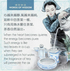When the heart becomes quieter, the energy becomes purer. Such energy is like tea leaves in a cup; when they are submerged in hot water, the fragrance of tea will permeate the air.