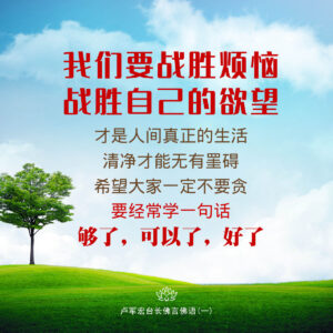 要看清楚这个世界都是假的,实质是空。我们要战胜烦恼,战胜自己的欲望, 才是 人间真正的生活,清净才能无有罣礙。希望大家一定不要贪,要经常学一句话 “够了,可以了,好了”。