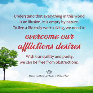 Understand that everything in this world is an illusion, it is empty by nature. To live a life truly worth living, we need to overcome our afflictions and desires. With tranquillity and purity, we can be free from obstructions. Do not be greedy. We must often remind ourselves that “I do not need anything more”, “It’s good enough” and “It’s OK”.