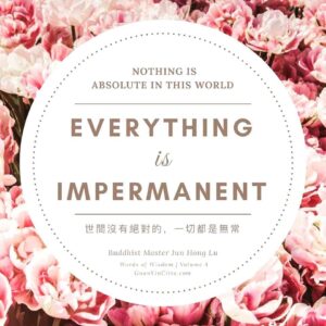 Words of Wisdom Words of Wisdom | Everything Is Impermanent 04/11/2020 | Words of Wisdom Words of Wisdom < Words of Wisdom Nothing is absolute in this world; everything is impermanent. 世间没有绝对的,一切都是无常。 Master Jun Hong Lu, Words of Wisdom Volume 4 < Words of Wisdom