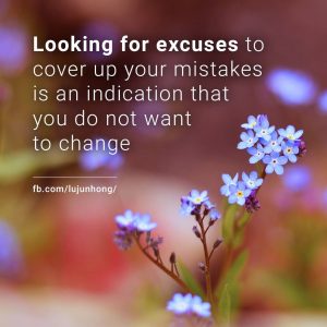 Looking for excuses to cover up your mistakes is an indication that you do not want to change. The process of looking for excuses is detrimental to your true nature. It harms you and leaves your conscience with no place to stay.