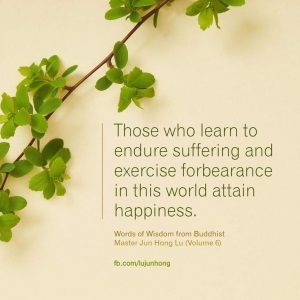 Words of Wisdom | Exercise Forbearance Published on September 8, 2020 Those who learn to endure suffering and exercise forbearance in this world attain happiness. 学会在人间吃苦忍耐,你就会得到幸福。 – Master Jun Hong Lu, Words of Wisdom Volume 6