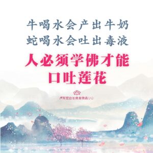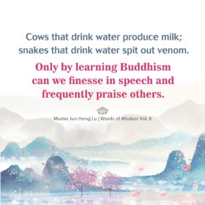 Cows that drink water produce milk; snakes that drink water spit out venom. Only by learning Buddhism can we finesse in speech and frequently praise others.