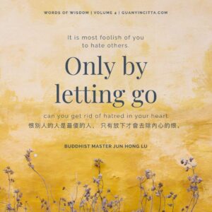 Words of Wisdom Words of Wisdom | Get Rid Of Hatred In Your Heart 11/11/2020 | Words of Wisdom Words of Wisdom < Words of Wisdom It is most foolish of you to hate others. Only by letting go can you get rid of hatred in your heart. 恨别人的人是最傻的人, 只有放下才会去除内心的恨。 Master Jun Hong Lu, Words of Wisdom Volume 4 < Words of Wisdom