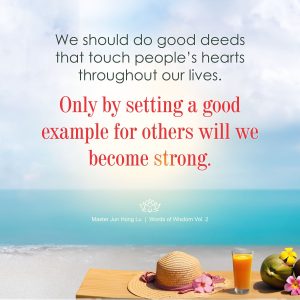 We should do good deeds that touch people’s hearts throughout our lives. Only by setting a good example for others will we become strong.
