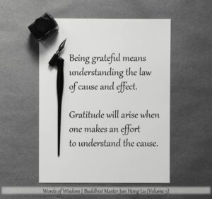 Being grateful means understanding the law of cause and effect. Gratitude will arise when one makes an effort to understand the cause.