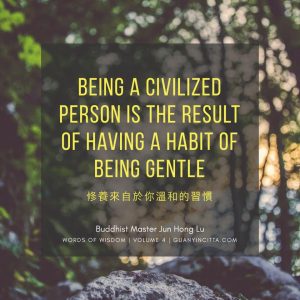 Words of Wisdom | Habit Of Being Gentle Published on October 25, 2020 Being a civilized person is the result of having a habit of being gentle. 修养来自于你温和的习惯。 Master Jun Hong Lu, Words of Wisdom Volume 4
