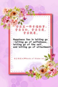 舍去是一件幸福的事: 舍去自私,舍去自我,舍去执着。