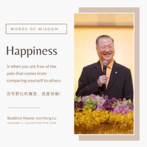 Words of Wisdom Words of Wisdom | Happiness Without Comparing Yourself To Others 07/11/2020 | Words of Wisdom Words of Wisdom < Words of Wisdom Happiness is when you are free of the pain that comes from comparing yourself to others. 没有对比的痛苦,就是快乐! Master Jun Hong Lu, Words of Wisdom Volume 4 < Words of Wisdom