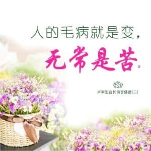 Words of Wisdom | Impermanence and Suffering Published on October 11, 2020 The problem is that people change. Impermanence is the cause of suffering. 人的毛病就是变,无常是苦。 – Master Jun Hong Lu, Words of Wisdom Volume 2
