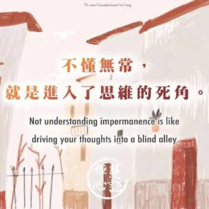 Words of Wisdom Words of Wisdom | Impermanence 30/10/2020 | Words of Wisdom Words of Wisdom < Words of Wisdom Not understanding impermanence is like driving your thoughts into a blind alley. 不懂无常,就是进入了思维的死角。 Master Jun Hong Lu, Words of Wisdom Volume 4 < Words of Wisdom