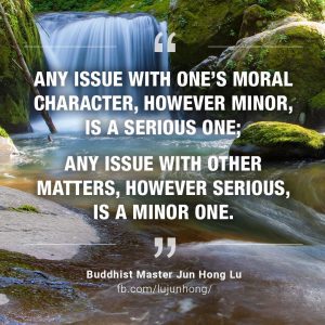 Words of Wisdom | Importance of Moral Character Published on November 4, 2020 Any issue with one’s moral character, however minor, is a serious one; Any issue with other matters, however serious, is a minor one. 人品再小,都是大事;事情再大,都是小事。 – Master Jun Hong Lu, Words of Wisdom Volume 2